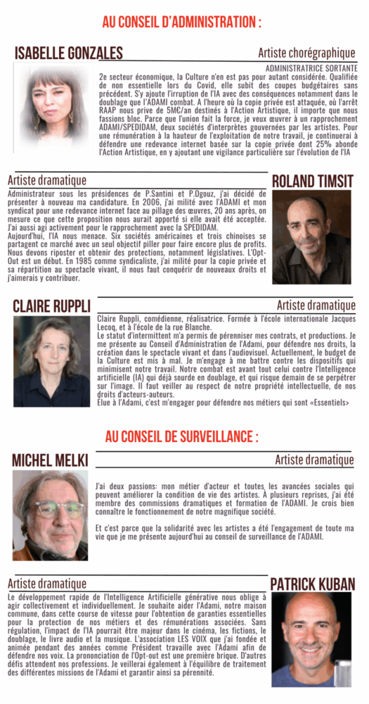Dans cette perspective, et face à la position de Rachida Dati quand nous l’avons interpelée, et du Président de la République, le syndicat national libre des artistes FO, exige une loi interdisant ces usages de l’IA. Il a décidé d’en appeler aux députés de l’Assemblée Nationale.